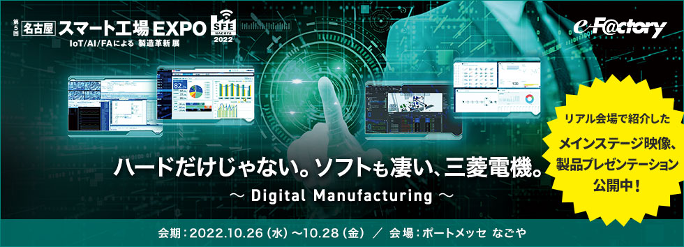 「ハードだけじゃない。ソフトも凄い、三菱電機。~Digital Manufacturing~」をテーマに、フィジカルで培った経験と多種多様なFA機器の強みを活かし、デジタル空間上で製造現場を再現し、現場のPDCAをサポートする最新のソリューション・ソフトウェア製品群をご提案いたしました。