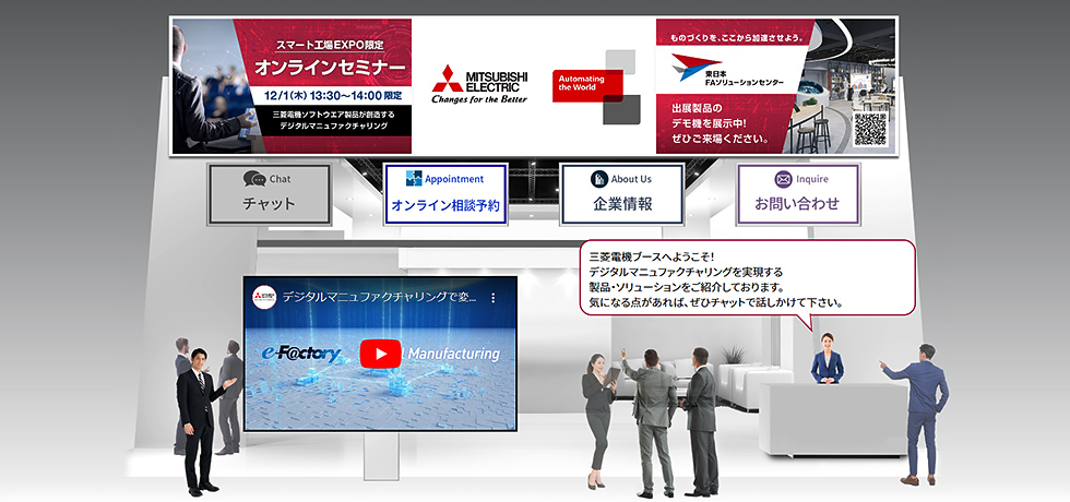 2022年11月3日(水)~12月2日(金)にかけてオンラインで行われました「スマート工場EXPOオンライン展」に出展し、「ハードだけじゃない。ソフトも凄い、三菱電機。~Digital Manufacturing~」をテーマに最新の「凄い!」ソフトウェア製品群をご紹介いたしました。
