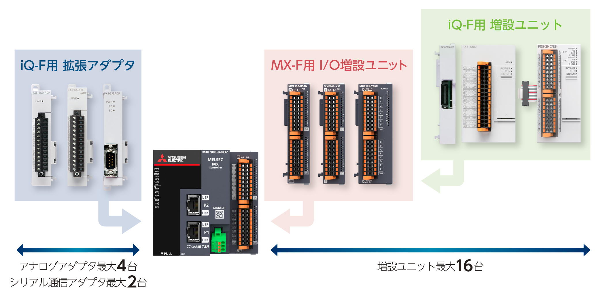 - iQ-Fシリーズ用の拡張アダプタや増設ユニットも接続可能