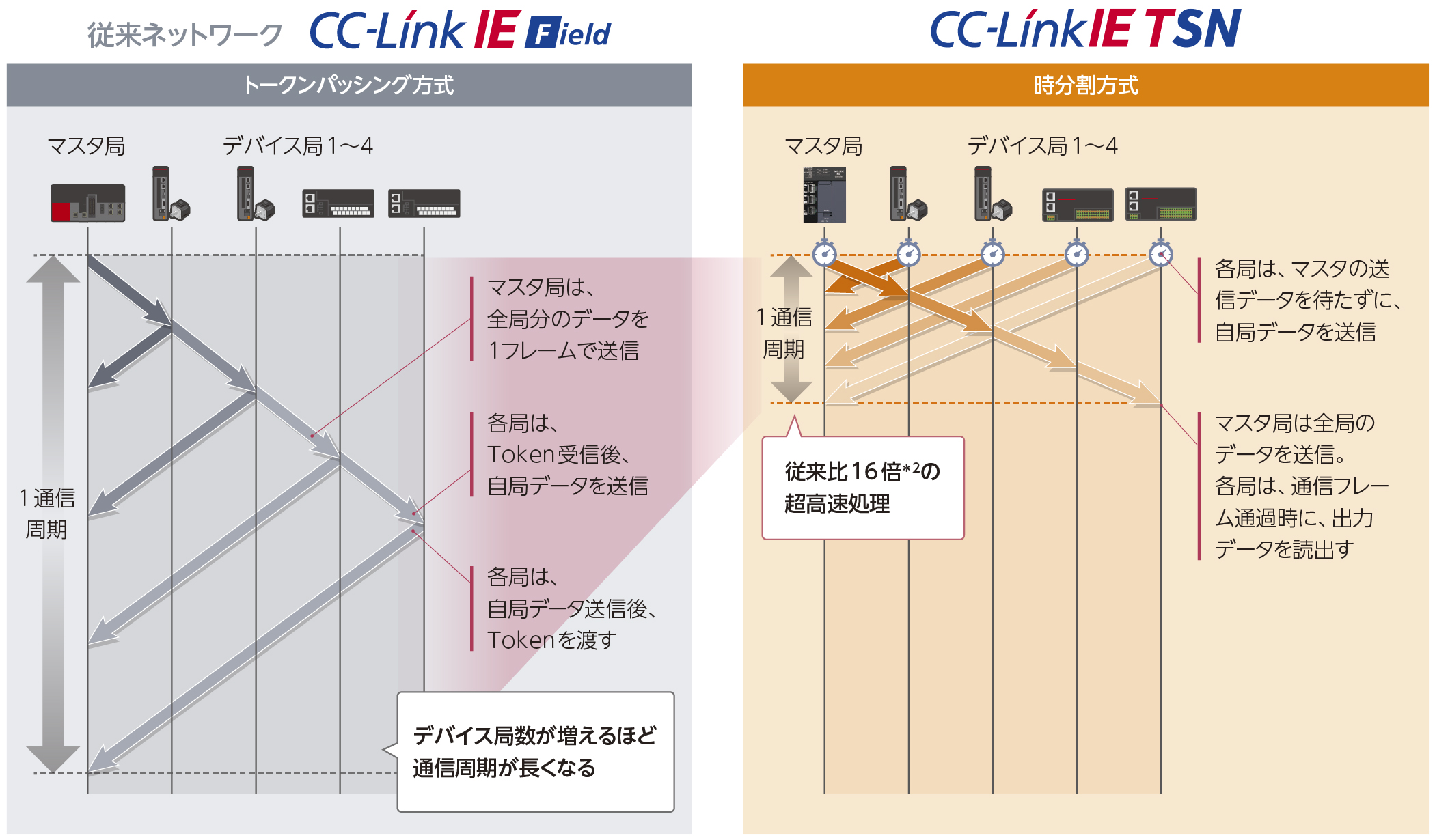 CC-Link IE TSN の時分割方式通信でデバイス局数に依存しにくい通信が可能