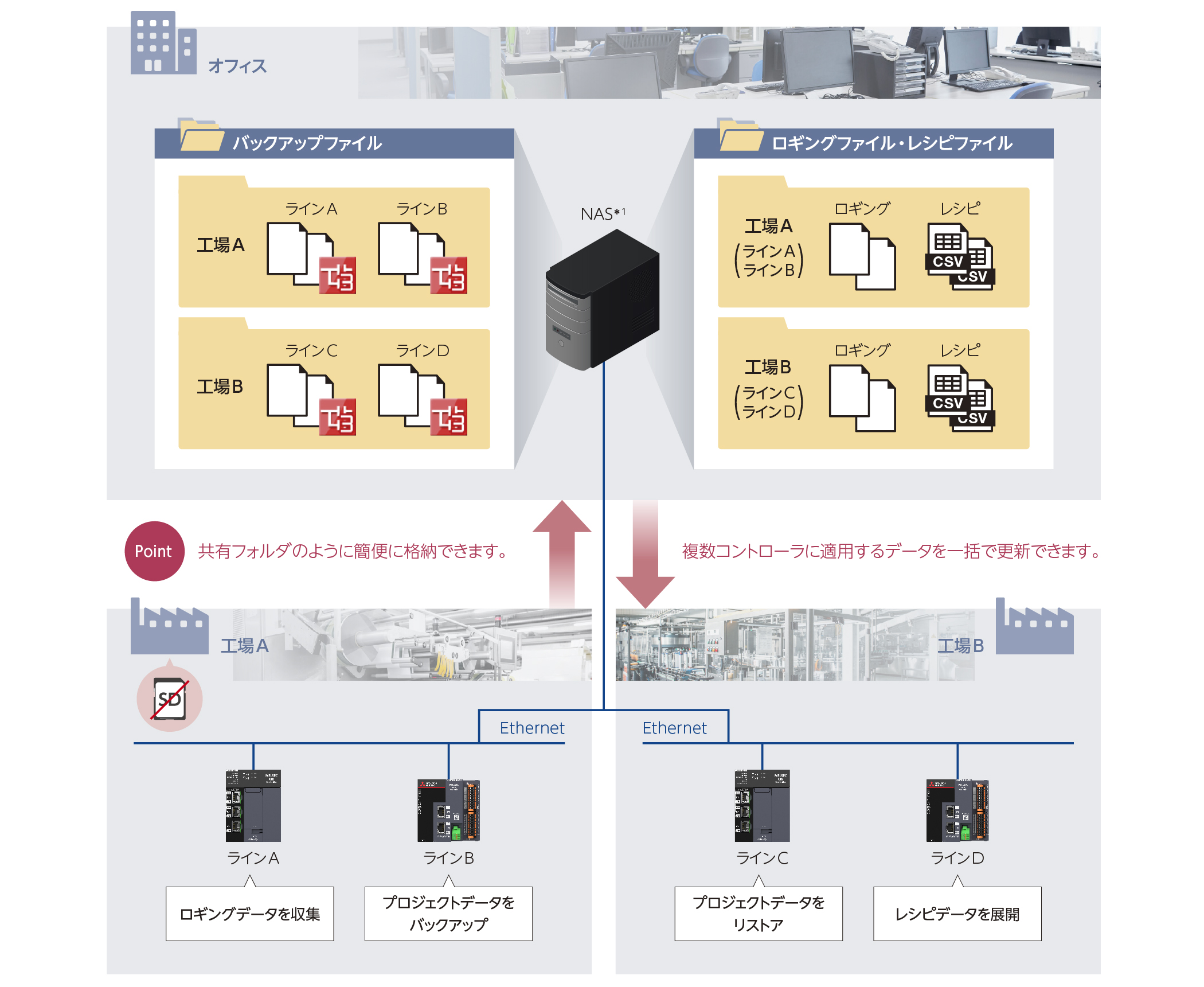 - ネットワークドライブ接続で、スマートなデータ一括管理が可能