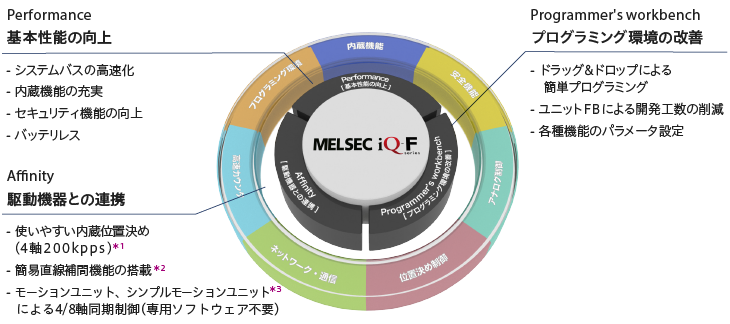 三菱電機マイクロシーケンサMELSEC-Fシリーズは基本性能の向上,駆動機器との連携, プログラミング環境の改善をコンセプトに、 MELSEC