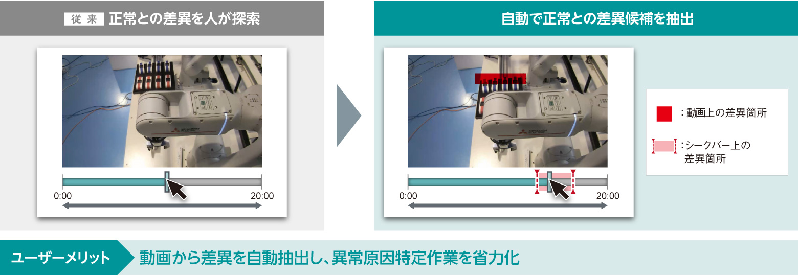 「見た目」と「動き」の変化から差異を抽出し、自動でマークします。もちろん、ログマーカーは、他のアプリケーションと同期可能です。