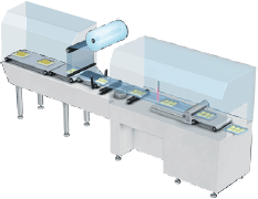 移動中(1 軸直線制御) の目標位置を任意のタイミングで変更する機能です。右図の装置例のように、次のラインへ移動中に製品の検査を行い、不良品が発生した場合は目標位置を変更して不良品入れに入れるといった変更が可能です。