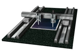 2軸が同期して移動する機構です。2軸のみ同期制御を行い、他の軸は通常の位置決めをすることができます。