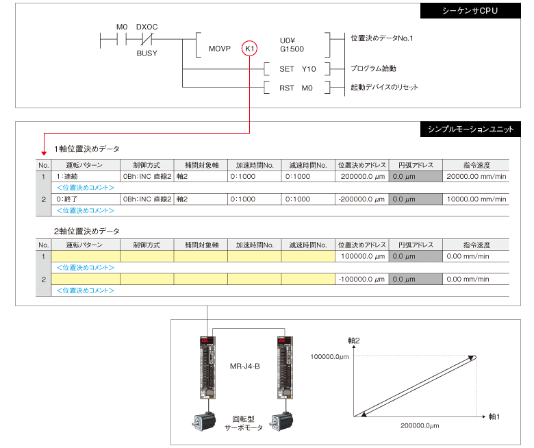 シーケンサCPUからシンプルモーションの位置決めを始動します。