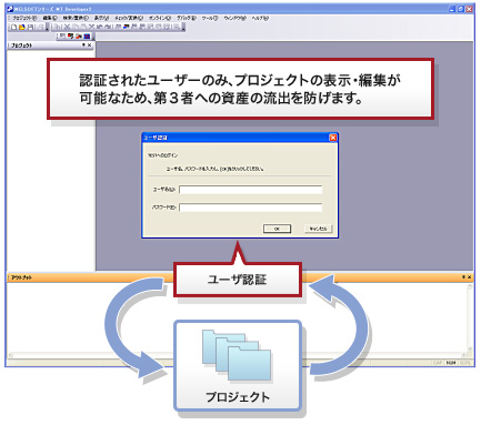 プロジェクト内のプログラムデータの盗用を防止します。