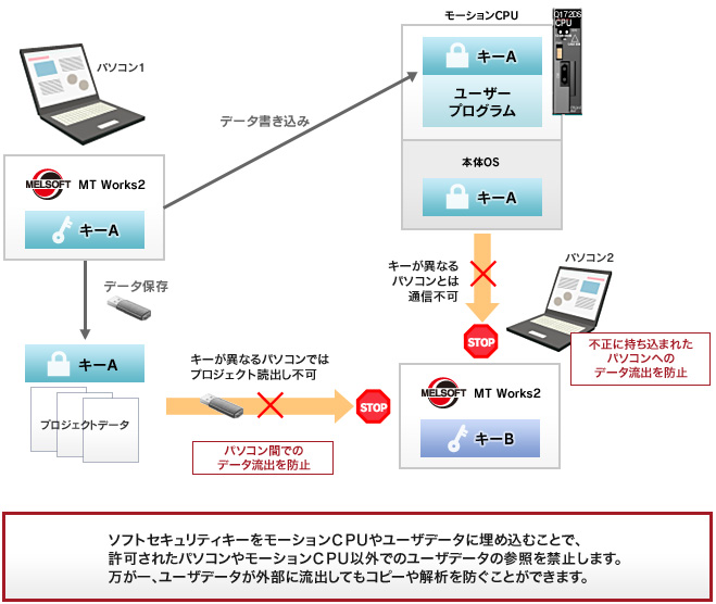 モーションCPUとパソコンにソフトセキュリティキーを設定することで、