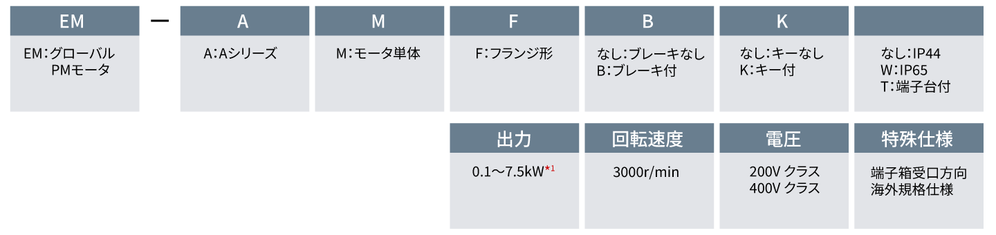 EM-AMシリーズは、特許取得の突極形コア *1 を採用した新開発の磁石モータです。