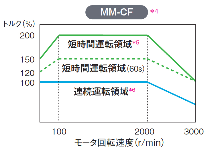*6低速域(7.5r/min)以下は、連続運転トルク80%となります。