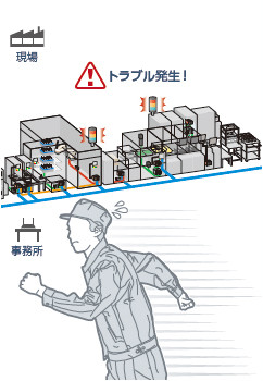 現場に行かなくても、現場のGOTを簡単にモニタ・操作できるため、スピーディな対応が可能です。
