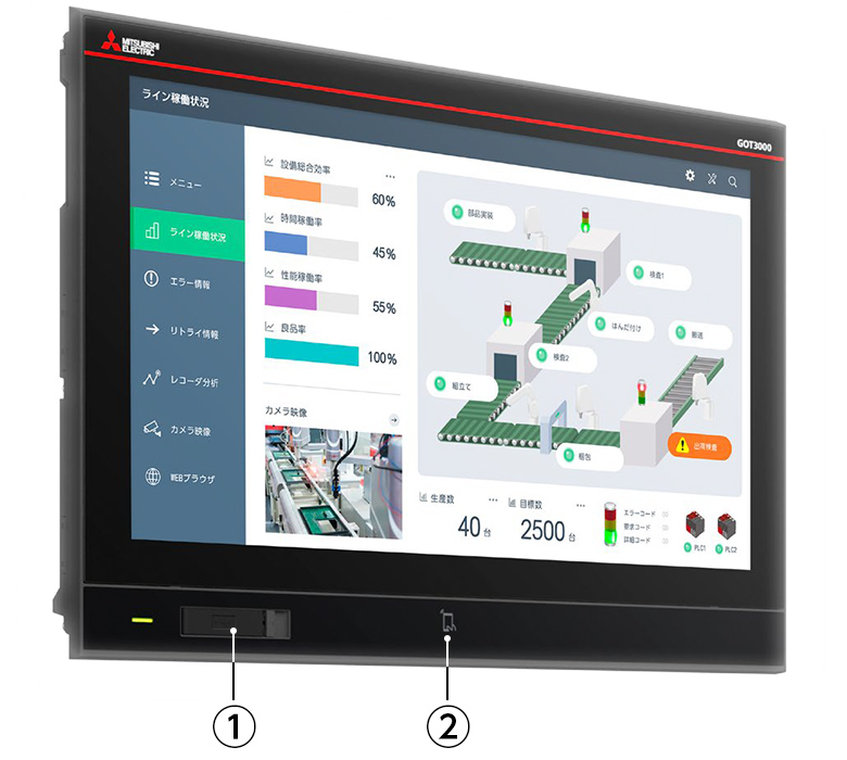 HDMIケーブルで外部モニタに接続して、GOTの画面を出力できます。