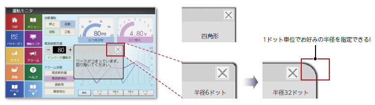 画面上の文字だけでなく、図形の輪郭もアンチエイリアス処理ができるようになりました。画面全体でなめらかな描画が可能になり、ストレスを感じないキレイな画面を作成できます。