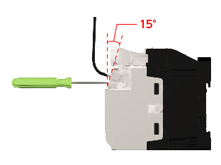スプリングクランプ端子部は前面に対して約15°の傾斜があるため、