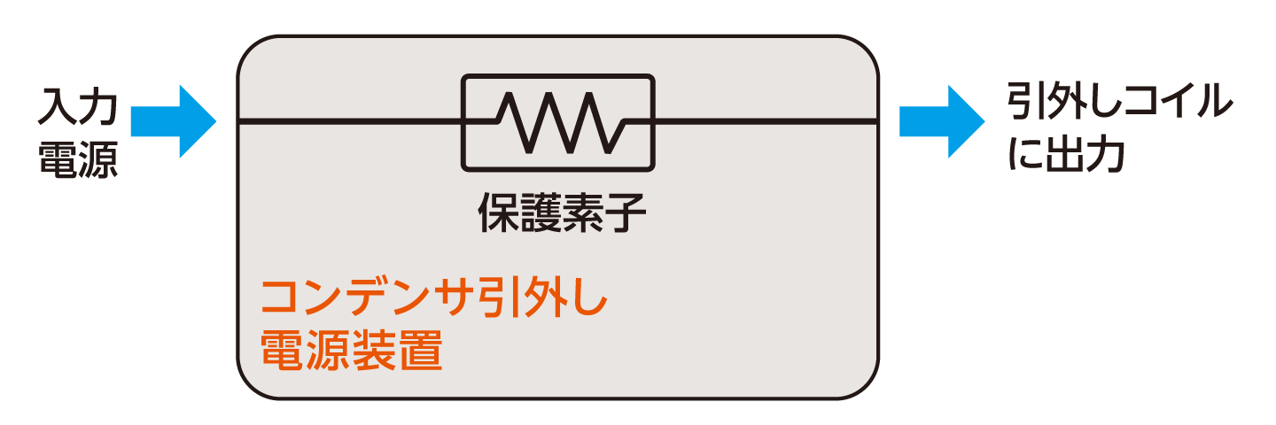自己復帰形の保護素子(PTCサーミスタ)内蔵により、誤って連続通電してしまった場合でも、出力電流を微小に制限し、引外しコイルの焼損を防止します。