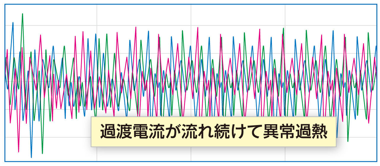 高調波ひずみ率が高いと、「高調波引込み現象」と呼ばれる過大な高調波電流が継続して流れる現象が発生し、直列リアクトルの異常過熱や、保護ヒューズの不要溶断などのトラブルが発生するケースがあります。