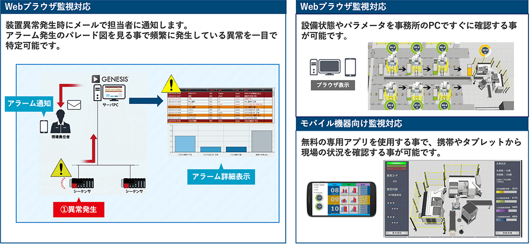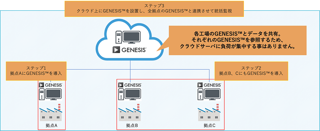 クラウドを通じて複数拠点/工場のGENESIS™を統括監視する事も可能です。