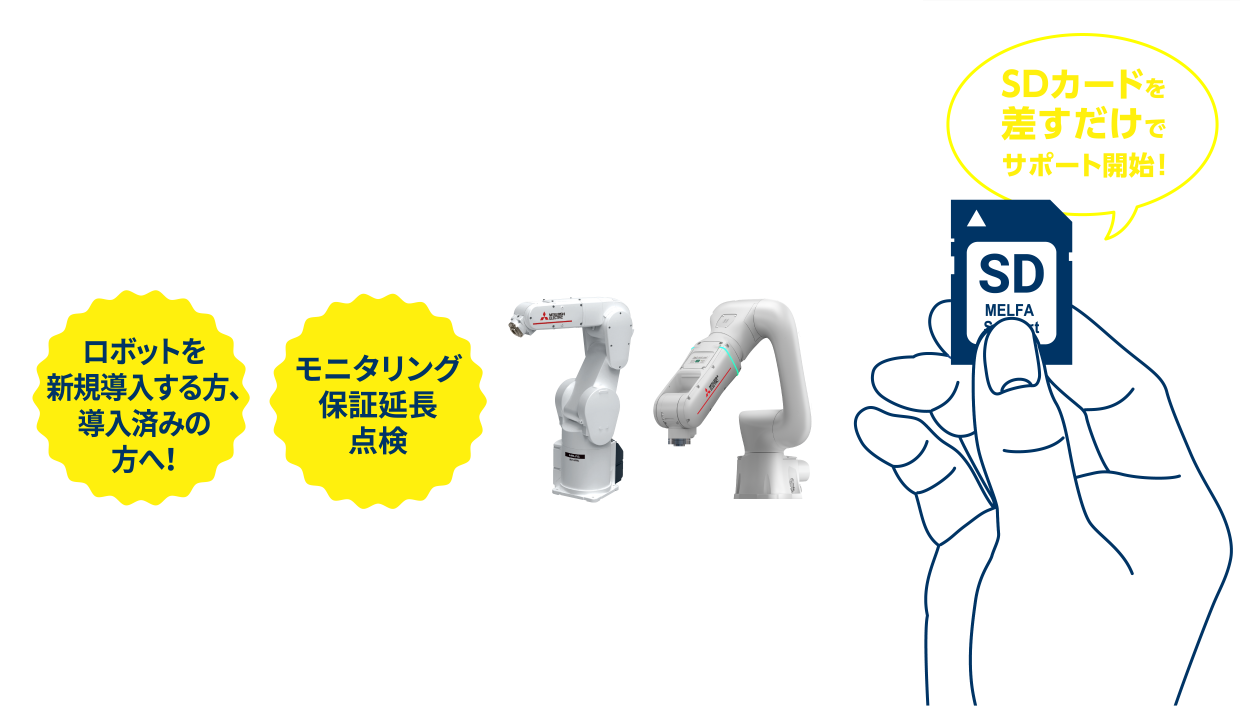 ロボットの新規導入時に、無償修理の保証期間を2年、または3年の延長が可能※。